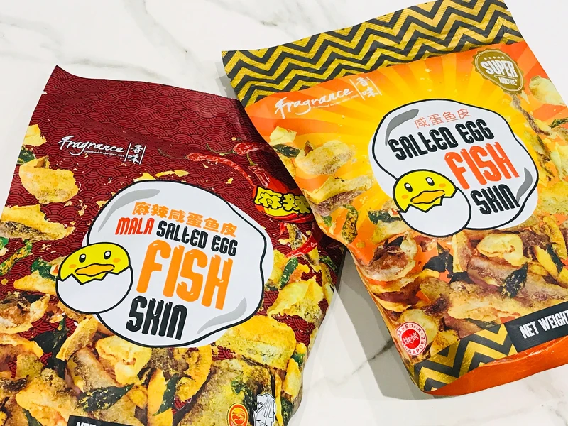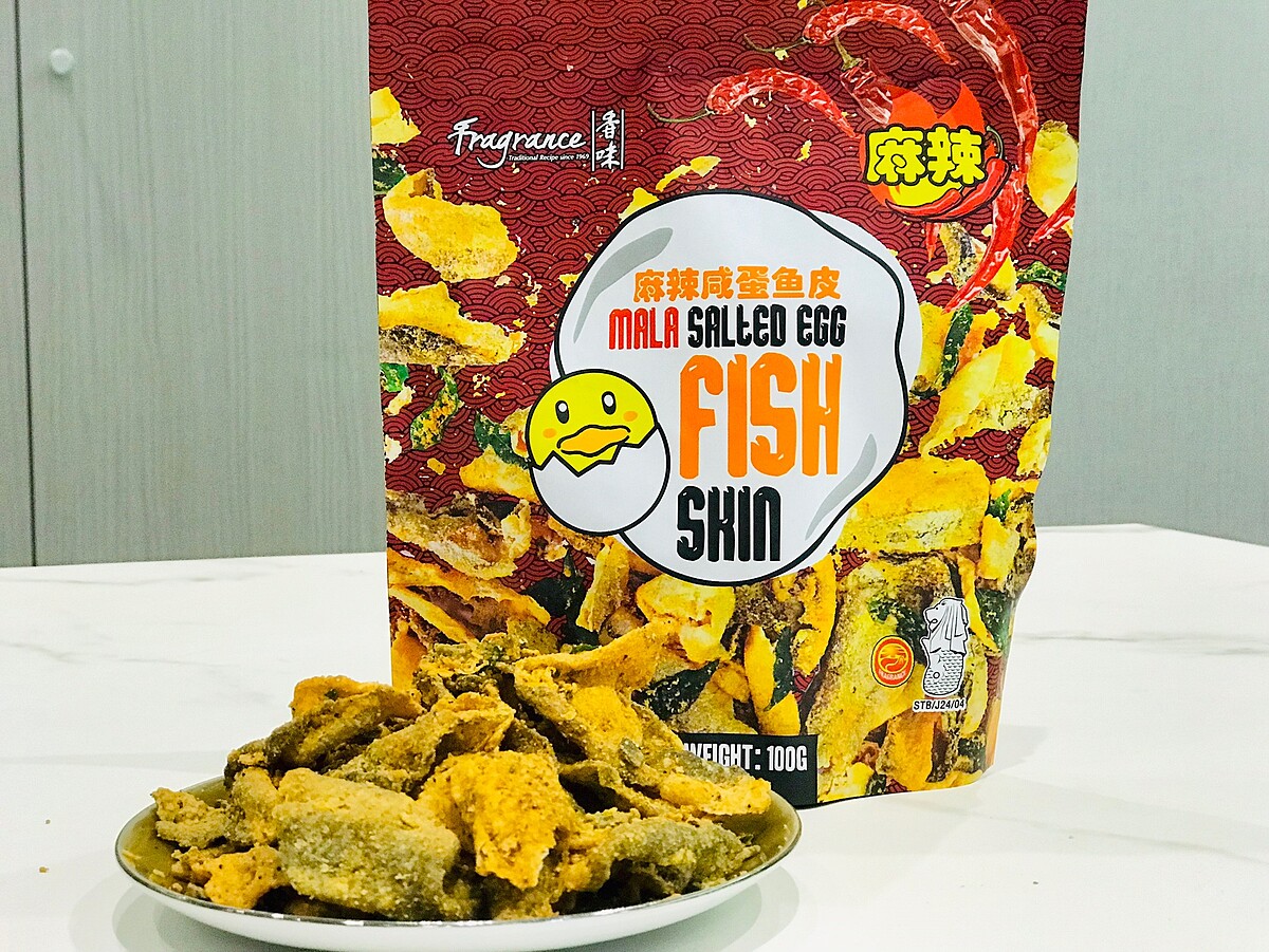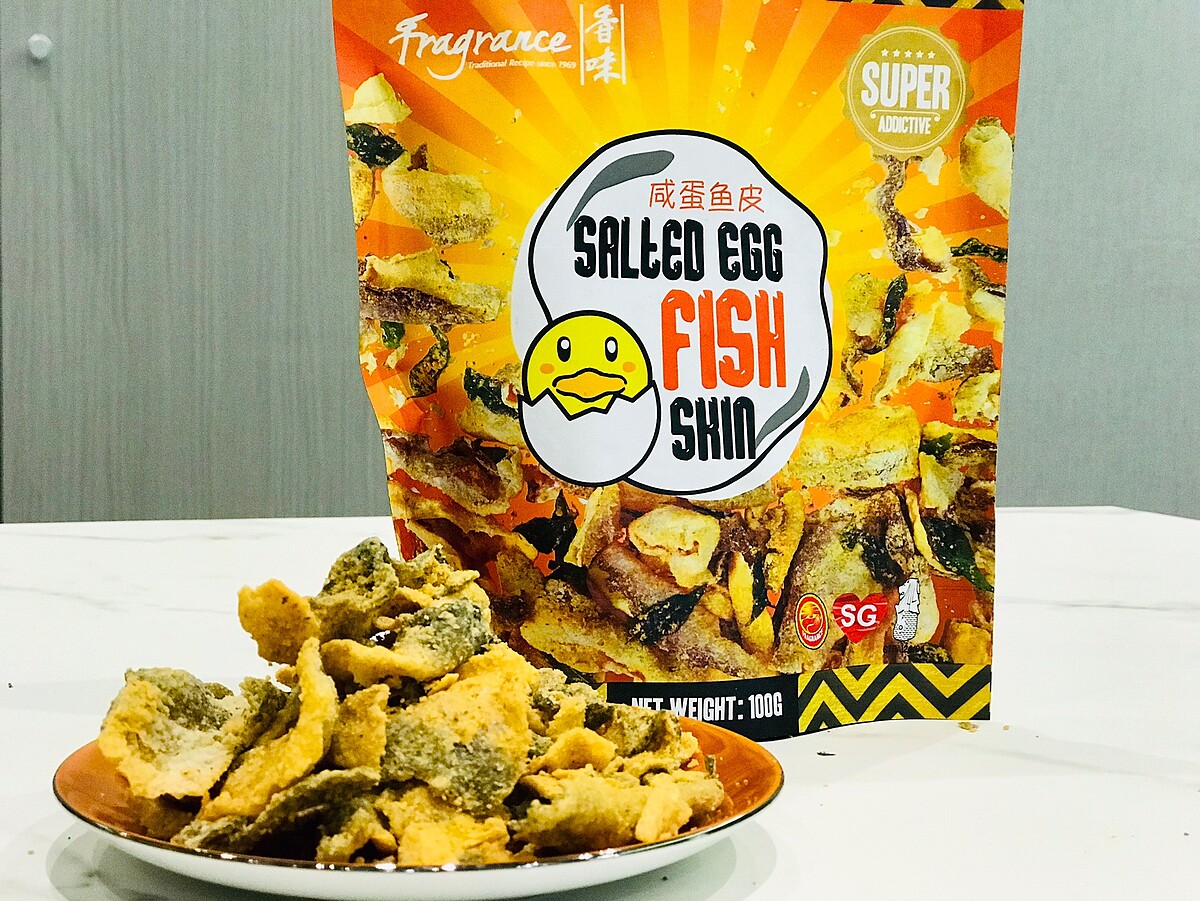 《香味》鹹蛋黃魚皮真的超涮嘴,以百分之百的真鹹蛋製作,使用高溫烘烤而非油炸,講求養生的零嘴新選項,製作時選用秘製調味粉,配上提味的鹹蛋黃、辣椒,包裹於魚皮與咖哩葉上,與酥脆的魚皮口感涮嘴,忍不住一口接一口。