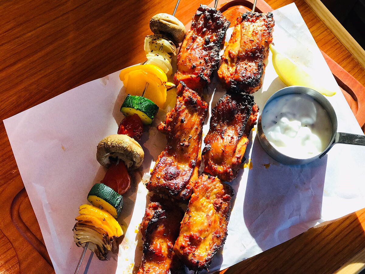 印度坦嘟裡香料烤雞腿串搭配香烤鮮蔬,清爽不膩口!
