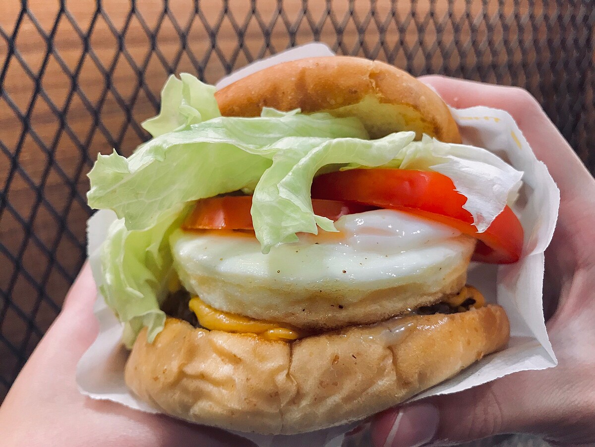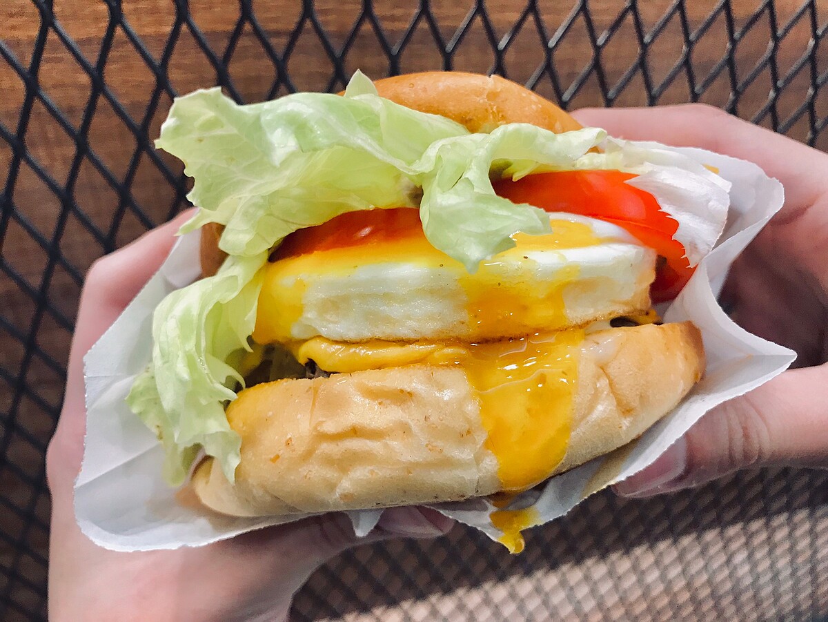 第一層夾入起司牛肉在放上超誘人的半熟蛋與豐富配料,品嘗時記得先壓緊漢堡後大口享用,蛋液緩緩流下光視覺就讓人垂涎三尺!