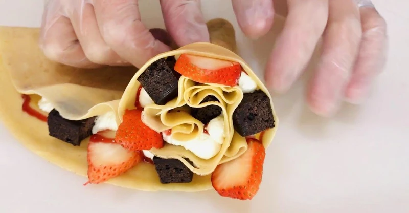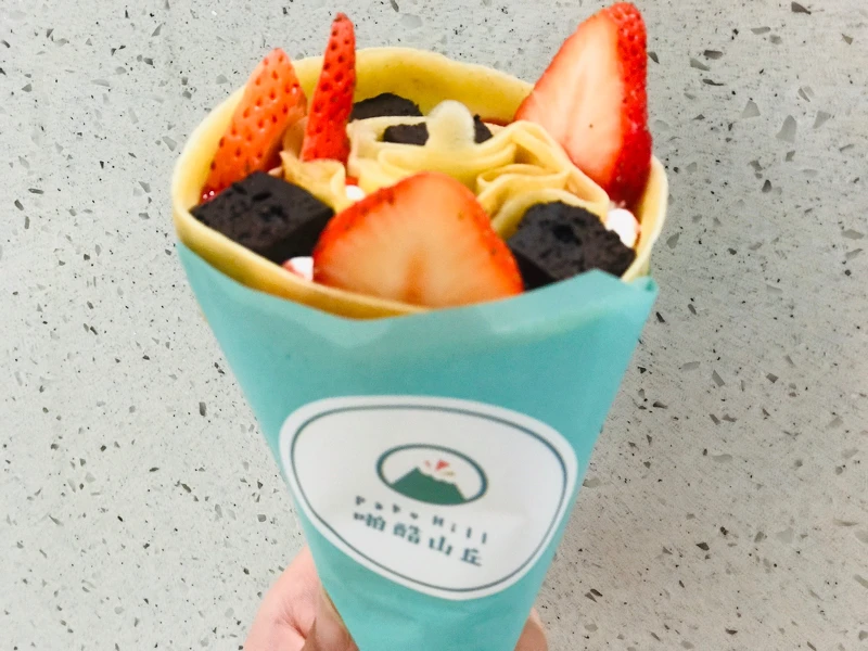 店名啪酷山丘中的Paku-Paku在日文中有大口享受美食的意思,更期待前往品嚐的人也能夠開心大口吃著美味的可麗餅!日式風格與法式甜品的結合,每款可麗餅捲起來的造型像花朵一般超級可愛~