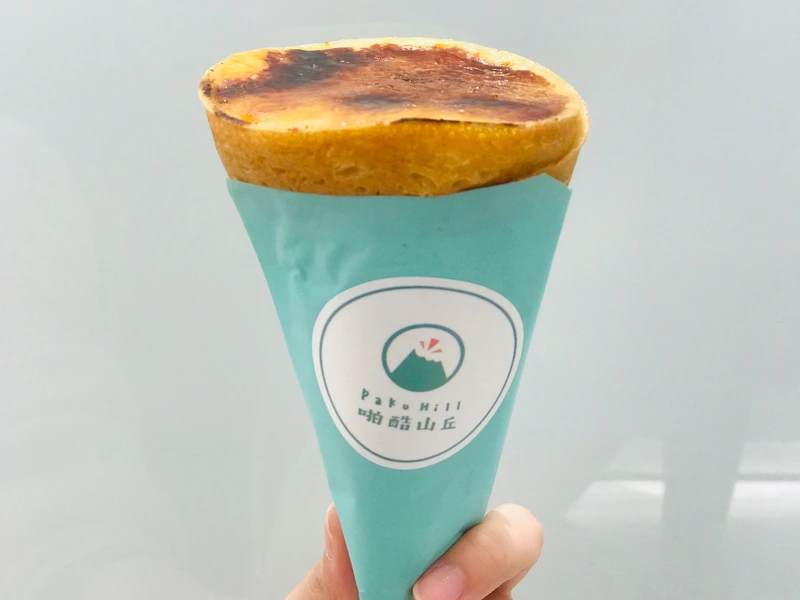啪酷山丘PakuHill推出超誘人的焦糖烤布蕾可麗餅,以軟式可麗餅為主,像花朵般造型讓人心花朵朵開!