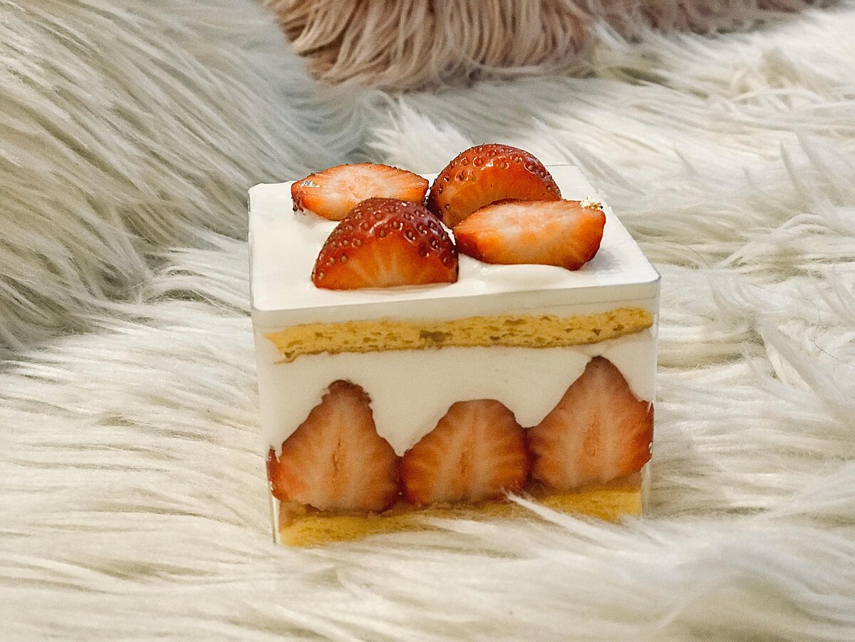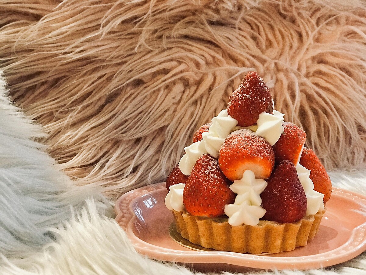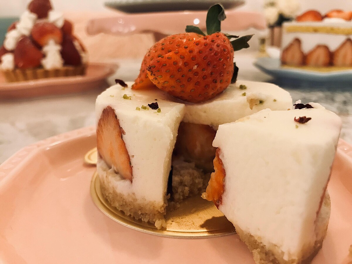 使用乳酪蛋糕餡、搭配甜塔皮、草莓果醬、草莓慕斯與白蘭地櫻桃酒慕斯,入口濃郁的草莓香氣口滑順口感忍不住一口接一口!