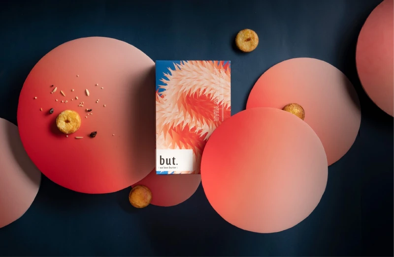 位於民生社區富錦街的but. 奶油甜點,想必大家對於他們的奶油圓餅不陌生,這回為了2020年打造but.新年限定包裝設計,加入東方奇幻神秘色彩「靛藍」,與新年熱鬧喜慶「紅色」,巧妙營造出龍飛鳳舞的磅礡氣勢。