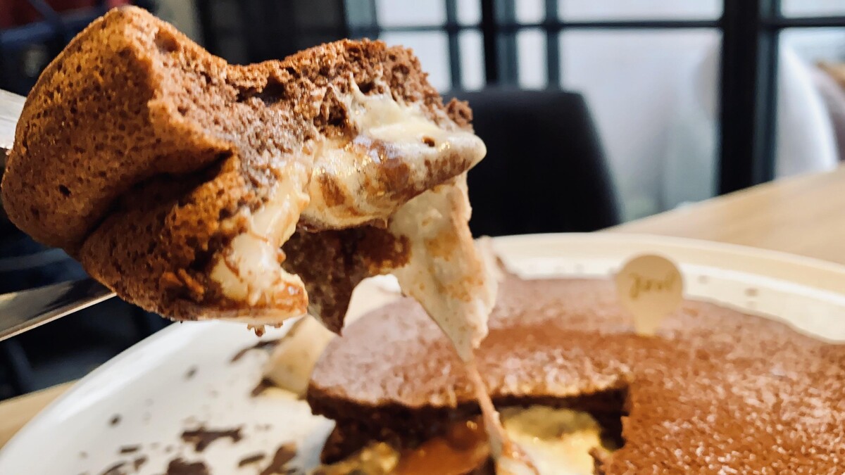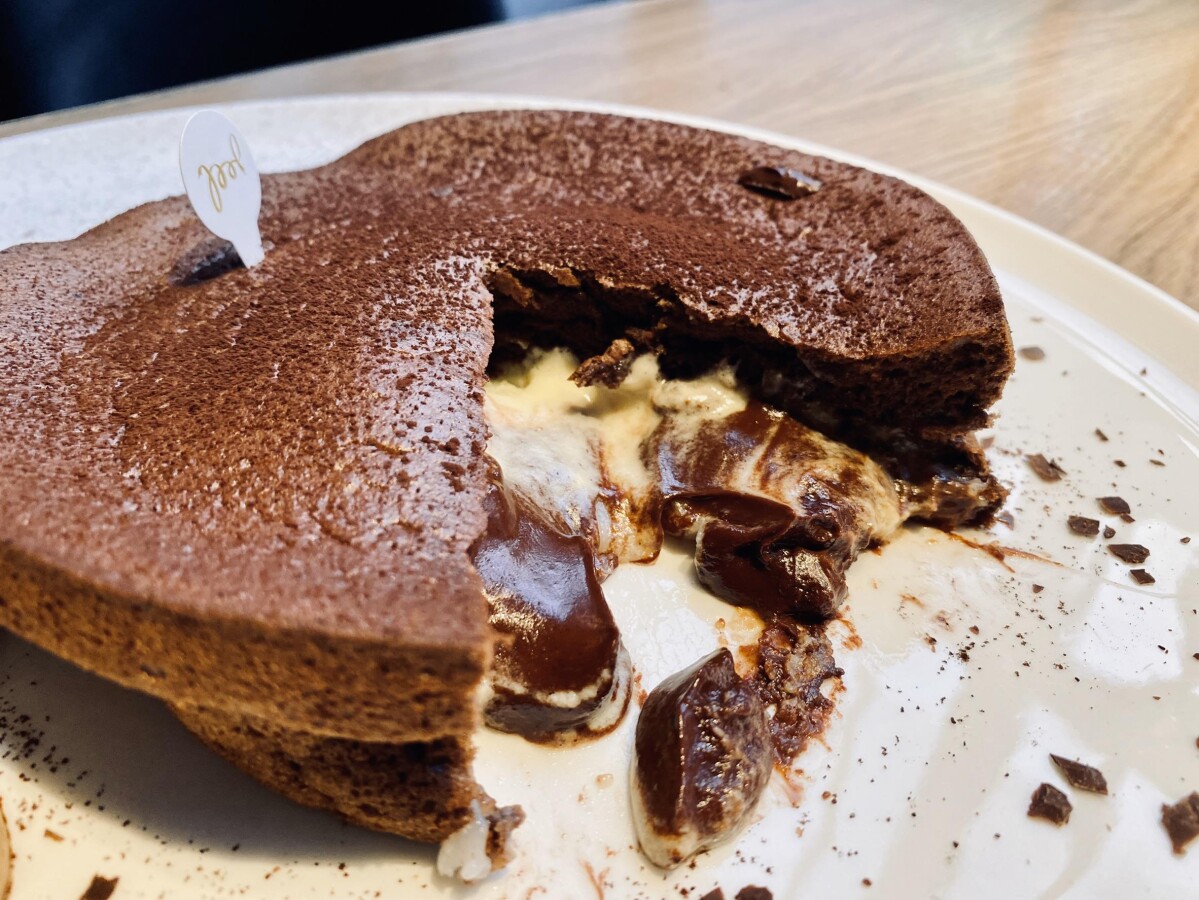 切開後熱騰騰的軟心內餡與巧克力香氣,入口感受巧克力與茶香的完美結合~