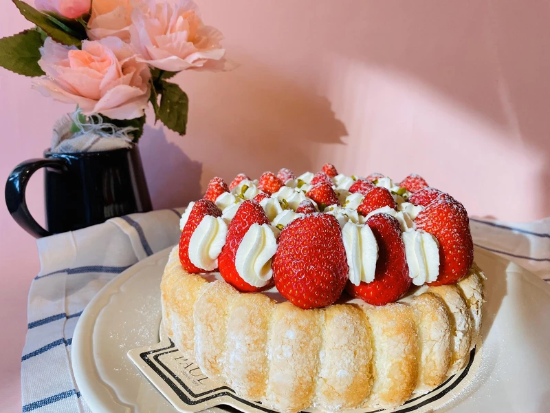 以法國直送的草莓夏洛特,推出升級版「草莓芙蕾雅夏洛特」,以優雅的模樣收服草莓控的心,當作生日蛋糕也非常適合!