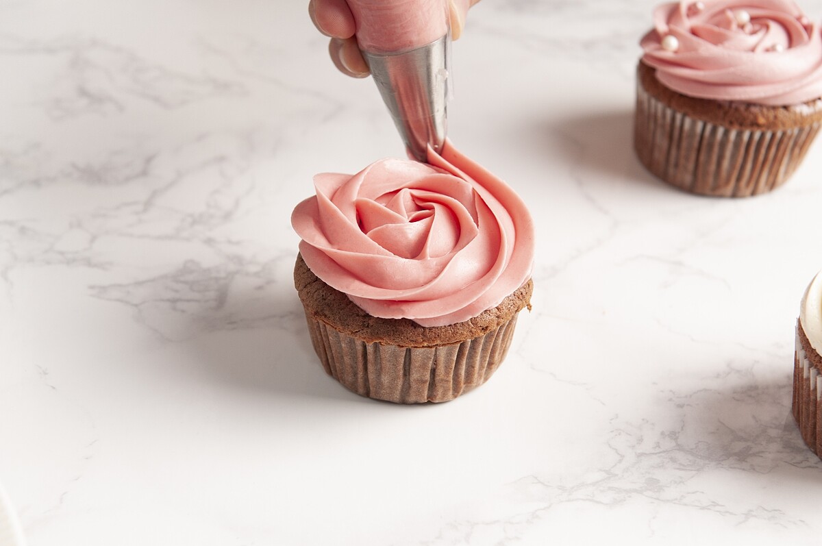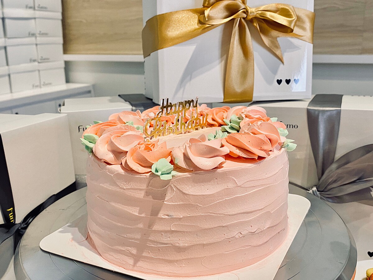 Funsiamo的甜點都非常清爽不膩口,以苦甜巧克力製作蛋糕體,內藏半融化爆漿巧克力及覆盆莓醬,最後以原味及覆盆莓瑞士奶油糖霜擠成玫瑰花造型,加上糖珠點綴,造型優雅大方,過年送禮首選之一!