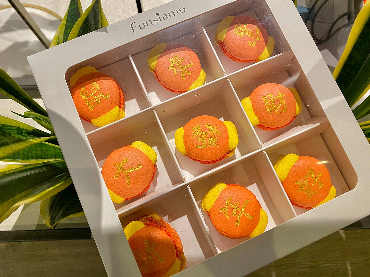 滿滿新年氣氛將馬卡龍製作成燈籠造型,香酥外殼搭配以法芙娜巧克力製作而成的內餡,其中更加入酸甜香橙切片~
