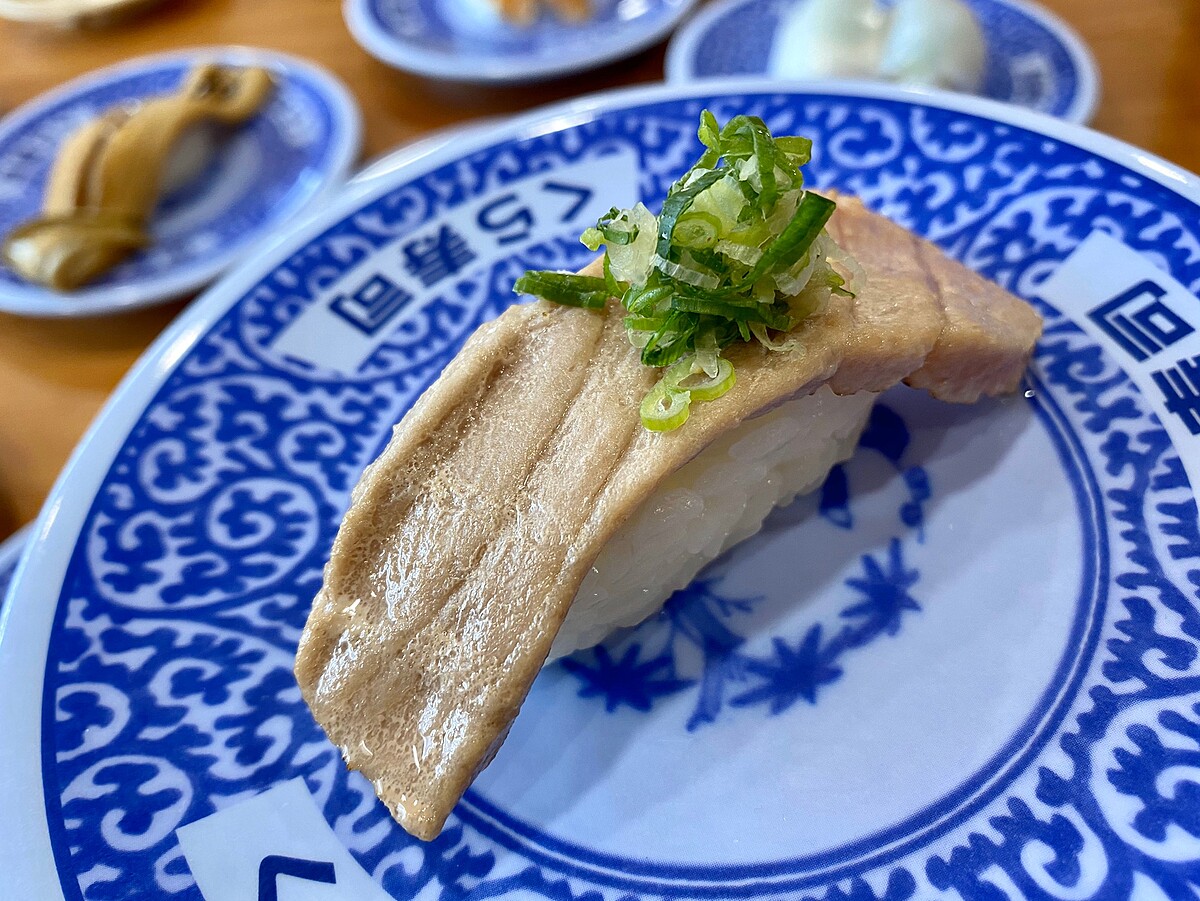 鮪魚中的帝王級「黑鮪魚」的中肚。天然油脂分布均勻,口味清爽又醇厚~