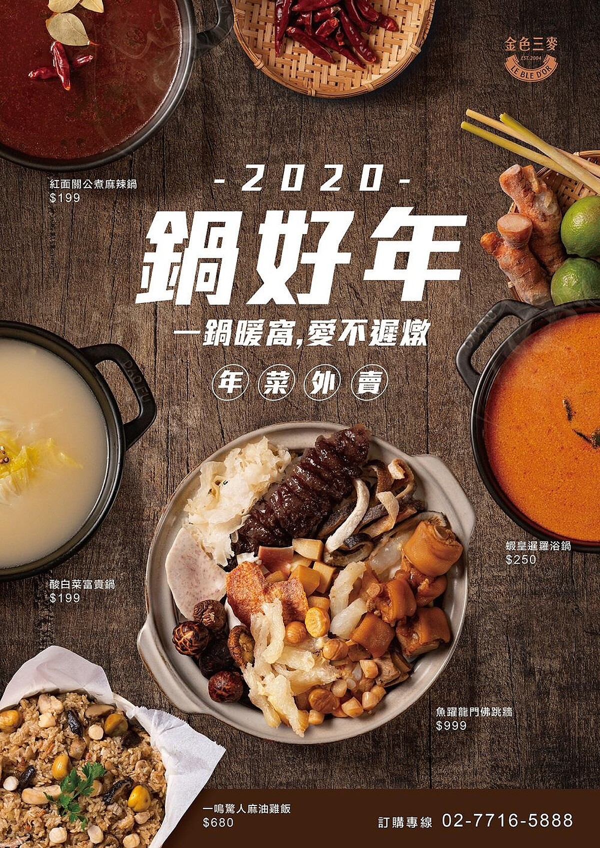 過年將至~除夕圍爐讓家人能夠團圓享受溫馨的氣氛,但烹煮年菜總會花上不少時間,這次年菜有了新的選擇!金色三麥餐廳推出「2020鍋好年」,兩款年節必備料理、三款全新鍋物湯底年菜組合暖心開賣!