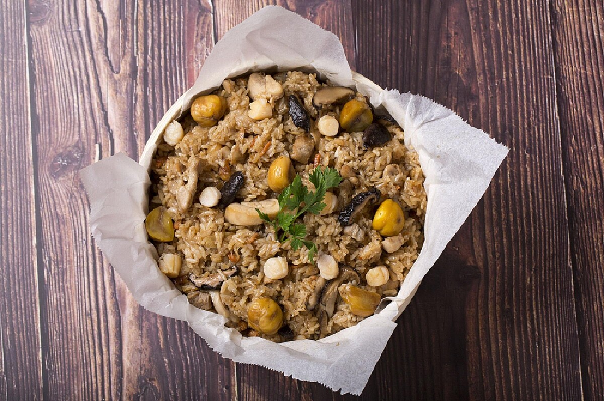 散發出陣陣誘人香氣,加入嚴選珠干貝、香菇、栗子和雞肉,堆疊出多層次的豐富口感。