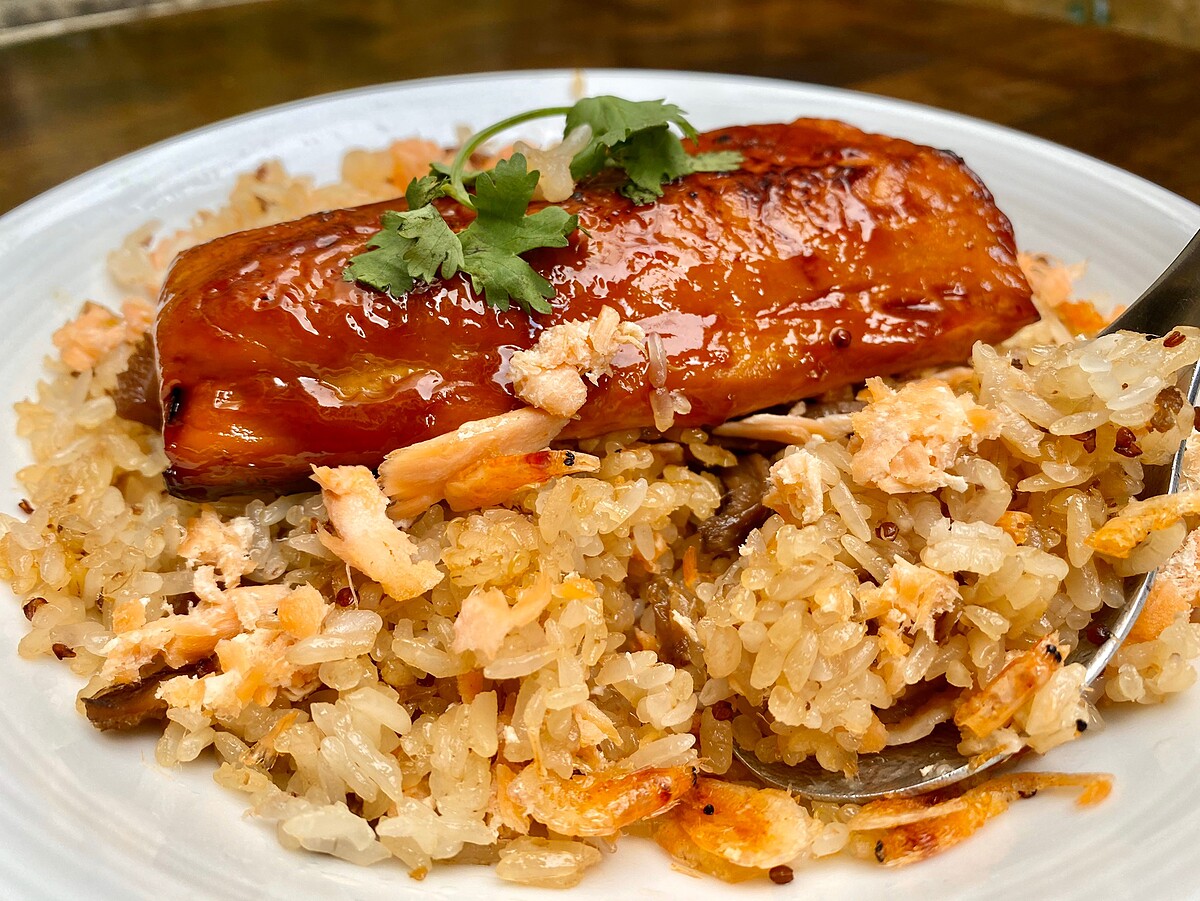 鮭魚油飯作法: