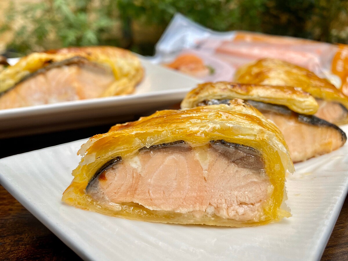 無論當作過年小點心或是宵夜都超適合~酥皮搭配上鮭魚豐富口感一吃就驚豔!做法也十分簡單只要將蒜香味噌鮭魚搭配附贈味增醬汁醃製入味後外層裹上酥皮放入烤箱即可完成!