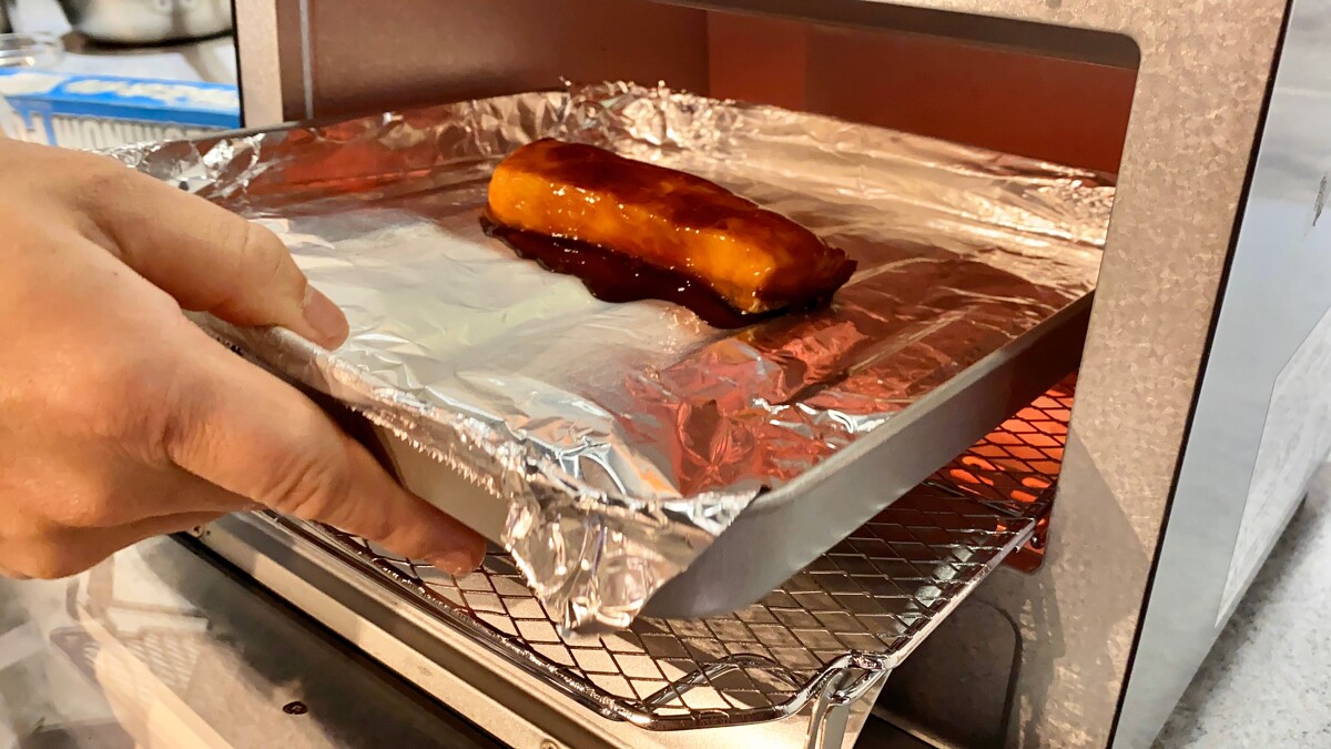 - 最後放上烤好的美威蒲燒鮭魚排即完成。