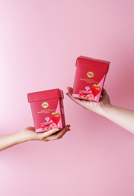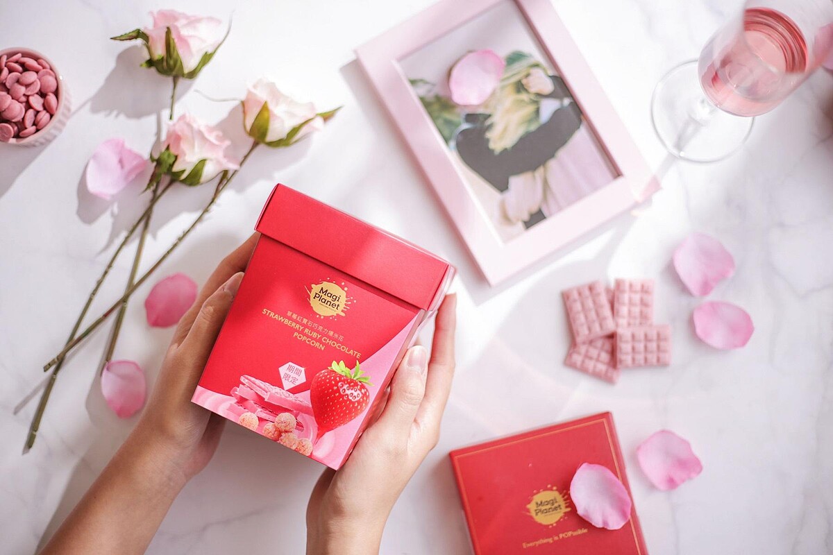 Magi Planet星球工坊的爆米花口味十分多元時常推層出新,像是椒麻、微醺可可、紅烏龍煉乳等,2020年打造「粉色爆米花」融合春季必嚐草莓,搭配奧斯卡晚宴指定、世界第4款巧克力-Ruby chocolate紅寶石巧克力,讓情人節多了一款爆米花選擇!