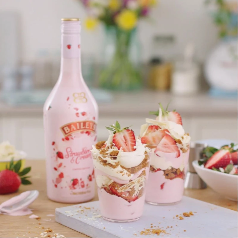 貝禮詩人氣草莓奶酒以威士忌為基底,再添加愛爾蘭奶油及草莓,每一口都帶有淡雅的草莓果香~