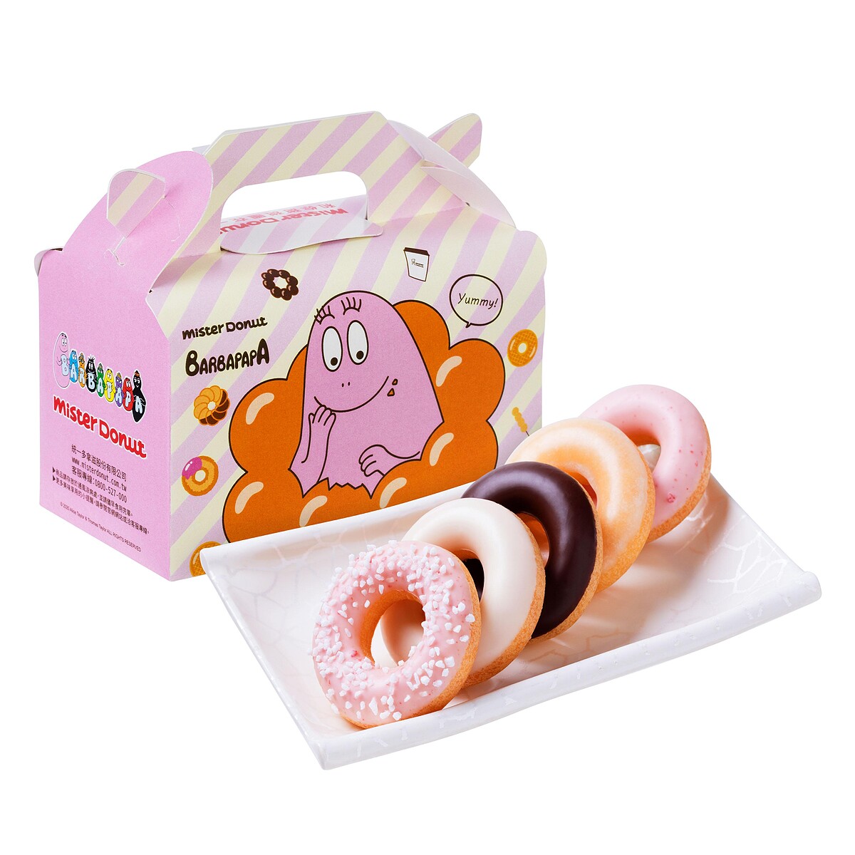 以人氣波堤為基底的5個小甜甜圈,Q軟有咬勁,能一次擁有巧克力、草莓、優格...等多種口味。搭配草莓季也換上了泡泡先生設計,讓軟萌的泡泡先生,陪著大家度過美好的下午茶時刻吧!