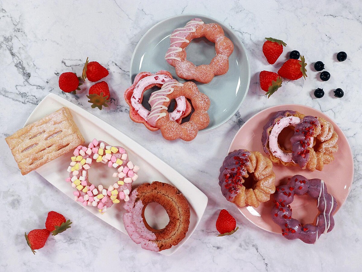 粉嫩的「泡泡先生」變成蓬鬆甜甜圈,搭配全新升級的草莓巧克力沾醬與日本輕盈鮮奶油內餡,香甜草莓風味,粉紅能量療癒登場,食用前請先拍照打卡。
