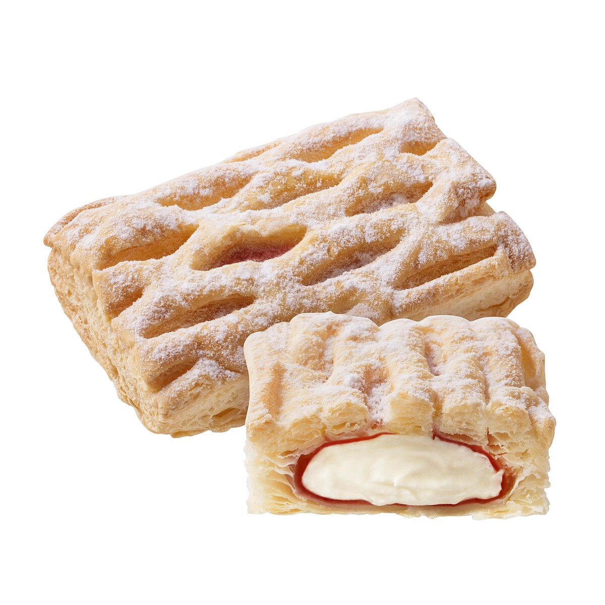 夢幻草莓波堤搭配黃金比例草莓鮮奶油內餡,濃郁的草莓香氣,咬一口,彷彿戀愛般的微酸微甜,令人陶醉在春日的浪漫氛圍裡。