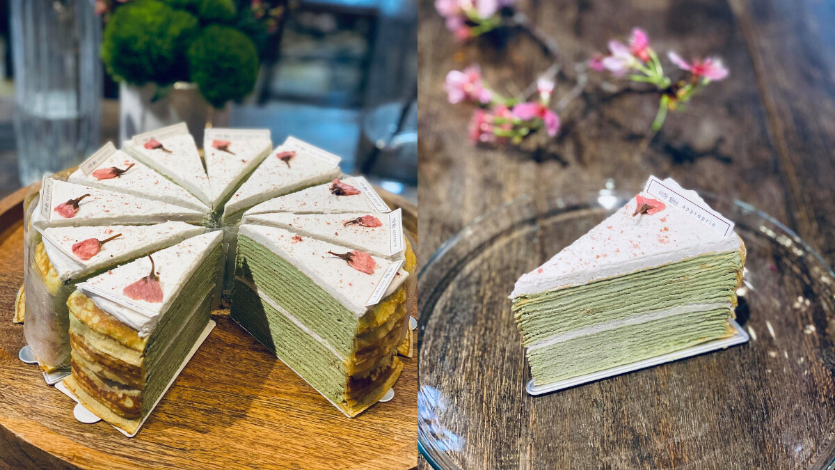櫻花抹茶千層 $300/片 (小山園五十鈴抹茶粉、法國&日本鮮奶油)