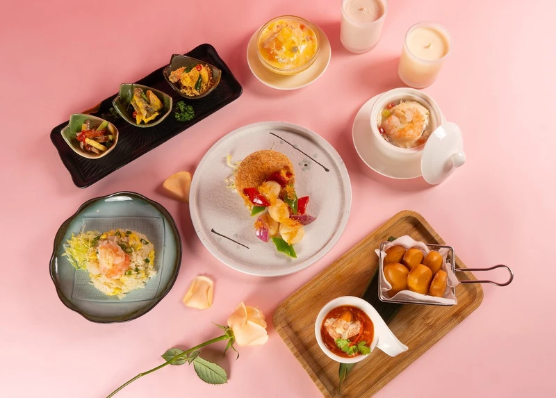 喜歡吃龍蝦的人,可以選擇「雙人濃情密意饗宴」,三款主菜包含「蒜蓉蒸波士頓龍蝦(半尾)」、招牌「辣椒蟹肉配炸饅頭」以及「新加坡馬來海鮮炒麵」,前菜還有新鮮現炸的「鹹蛋金沙魚皮」,也是新加坡超夯人氣零食。而「雙人甜蜜蟹逅饗宴」則是以「鵲巢XO醬炒鮮干貝」、「海鮮皇炒飯」以及經典「辣椒蟹肉配炸饅頭」為主,最後還有「楊枝甘露」當作甜品做結尾,讓你吃好吃滿。
