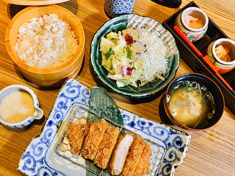金目鯛腹部的肉質外酥內嫩,而背部則外酥內扎實,品嚐時,可沾上少許自製塔塔醬,帶來更為濃厚的風味,另搭配肉質軟嫩的腰內豬排,呈現不同口感亦增加餐點豐富度。