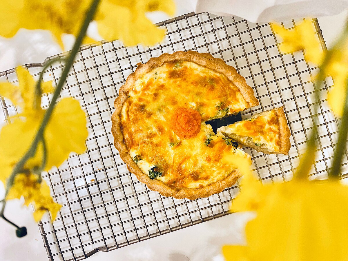 Funsiamo除了手作甜點外,現在有了鹹食的新選擇!首度推出經典鹹派,以翠綠花椰搭配雞胸肉片,加入焦糖洋蔥醬後灑上莫扎瑞拉與切達起士烘烤!
