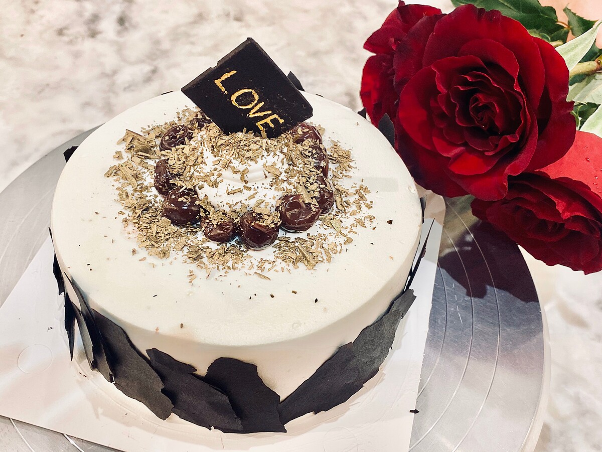 最後以金黃巧克力屑點綴,是款甜而不膩、外型高貴優雅的大人系黑森林蛋糕。