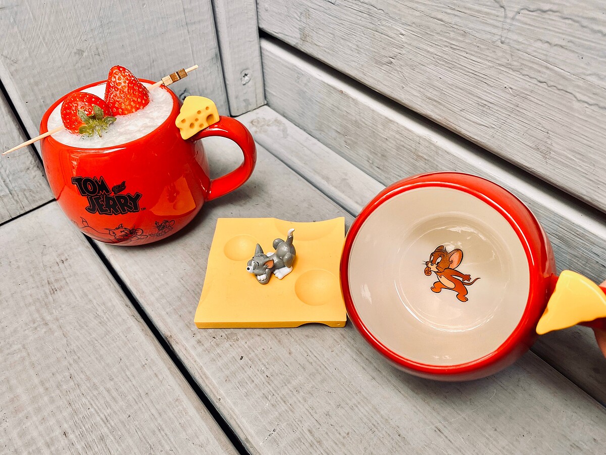 湯姆貓&傑利鼠限定組合的杯子在握把的上有一個立體的起司造型,這款杯子還有一個小亮點就是當飲品喝光後~杯底會出現傑利鼠的圖案實在太可愛啦!
