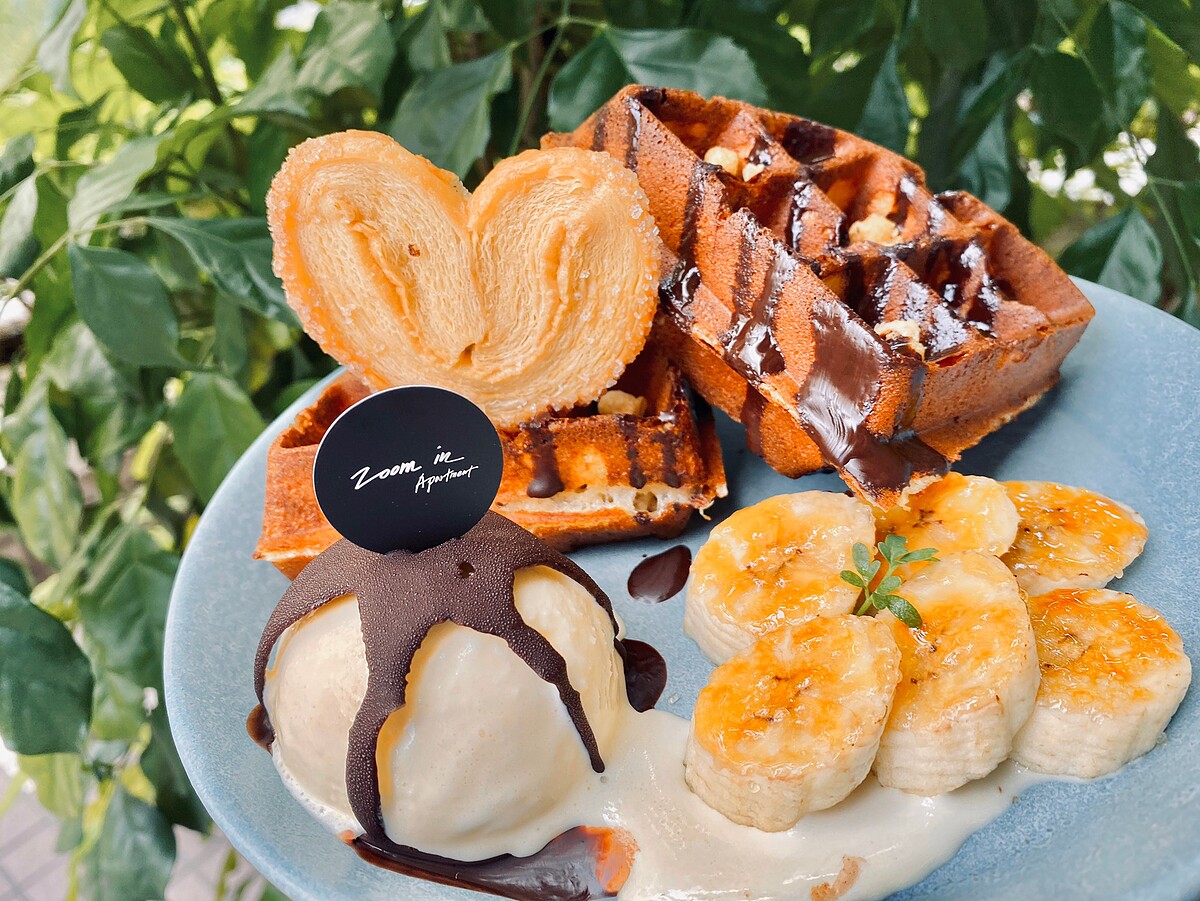 zoom in店內的招牌必點鬆餅,酥脆的巧克力鬆餅搭配香甜的巧克力醬,還有冰淇淋式下午茶的首選!