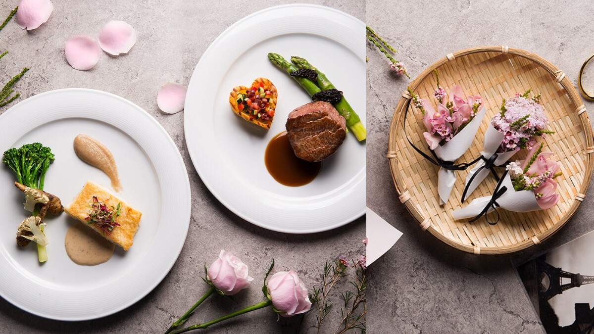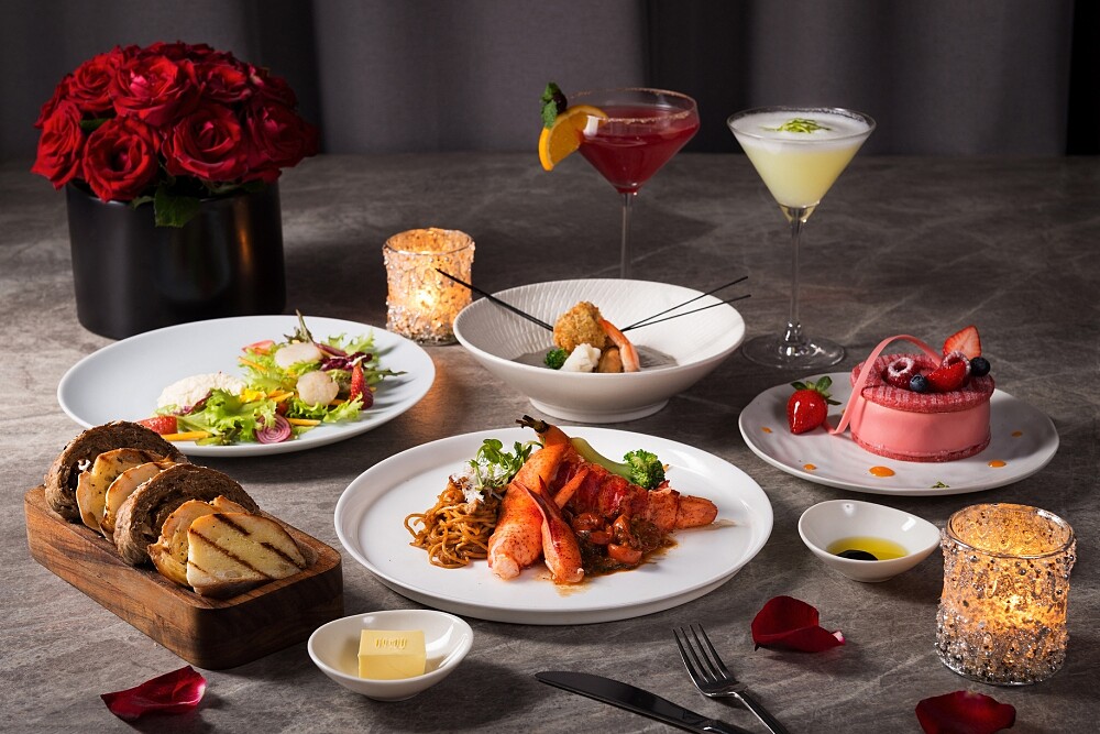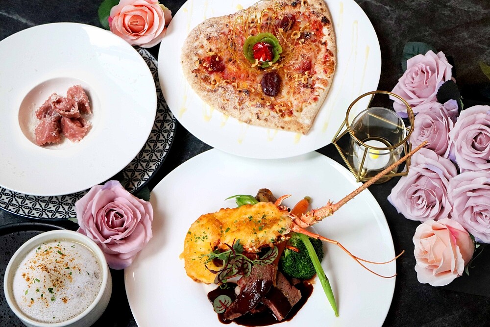 擁有大片落啲窗能遠眺台北101的誠品行旅In Between之間餐廳,推出三天限定的「摯愛情人套餐」,有龍蝦濃湯、粉紅甜菜根燉飯、炭烤肋眼牛排、杏仁櫻桃焦糖茶慕斯等多道精緻美饌。2/14當晚用餐還會獻上花藝師製作的絕美花束;2/15~16用餐則能享用情人專屬酒款,售價每位2,500元+10%。