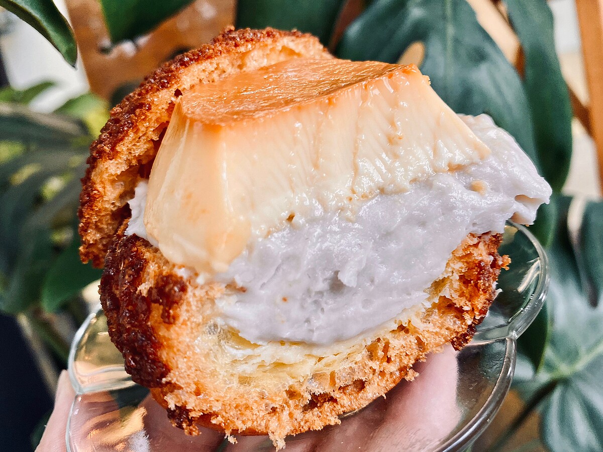 嚴選台灣在地大甲芋頭製成香濃芋泥,再夾入手工布丁搭超酥脆的菠蘿泡芙,多層次豐富口感,讓人一吃就驚豔!