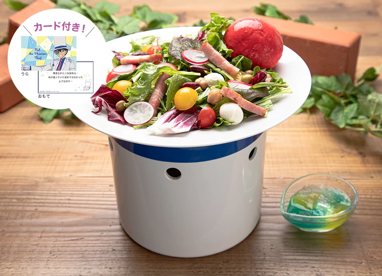 怪盜基德也是漫畫中的人氣角色,而怪盜基德的生日再6月21日與作者青山剛昌是同一天生日!柯南主題咖啡廳當然也不能少了怪盜基德生日餐,以繽紛的蔬菜沙拉再搭配怪盜基德經典高帽超級好拍~還會附上怪盜基德的特製卡片!
