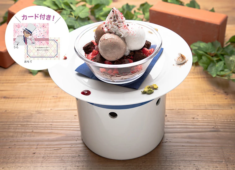 擄獲少女心的怪盜基德在這次限定餐點中,一樣有一款狙擊少女心的甜點聖代,會附上一張基德特製卡片,基德迷們必點推薦!