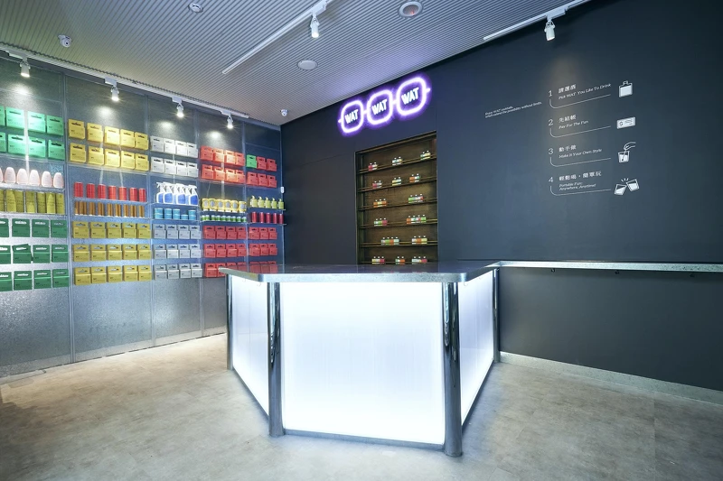 2019年末進駐台北信義商圈的WAT,為亞洲首家瓶裝雞尾酒複合概念店,品牌名稱源自「WHAT!”」諧音,象徵打破調酒規則的新嘗試,挑戰任何地點、任何時間,都能夠輕鬆享用WAT調酒。