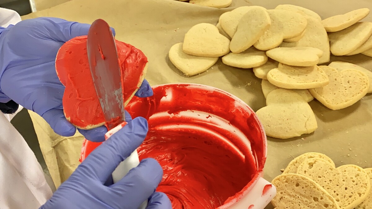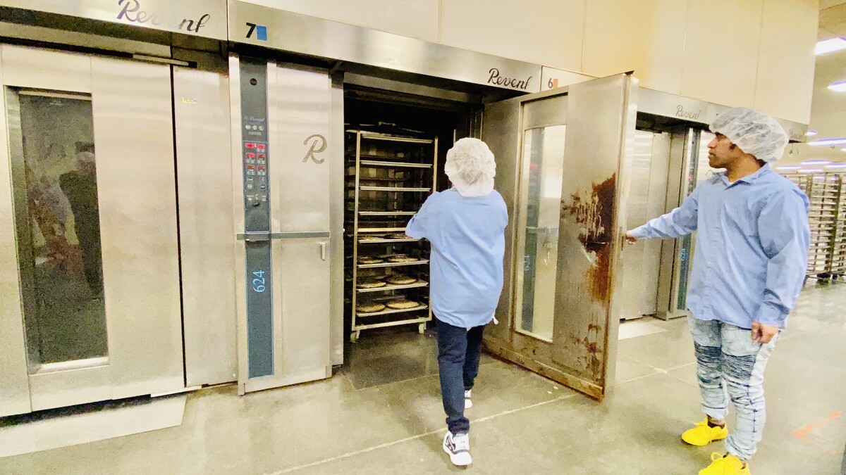 廚房擁有18450平方英呎的面積,進入gifting center前,需要帶上頭套、鬍子套以及洗淨我們的雙手,以確保衛生~這裡會製作出所有種類的布朗尼、餅乾、Cookie Cake、迷你馬芬…等等。平均一整年,會製作出7800萬份餅乾,等於超過約350萬公斤的麵團!