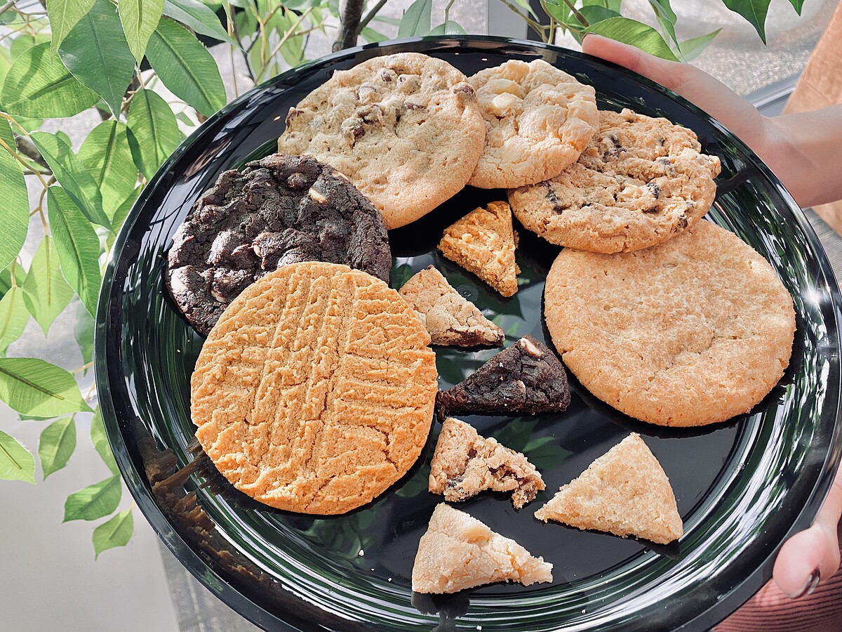 最特別的是目前美國幾乎已經沒有手工塗糖霜餅乾,通常都以機器取代,然而手工Mrs.Fields仍堅持透過人工塗上糖霜,體現出獨有的匠人手工風格,而著名的Cookie Cake也是手工壓成型的,十分有溫度,也是Mrs. Fields對於餅乾的執著與核心精神!