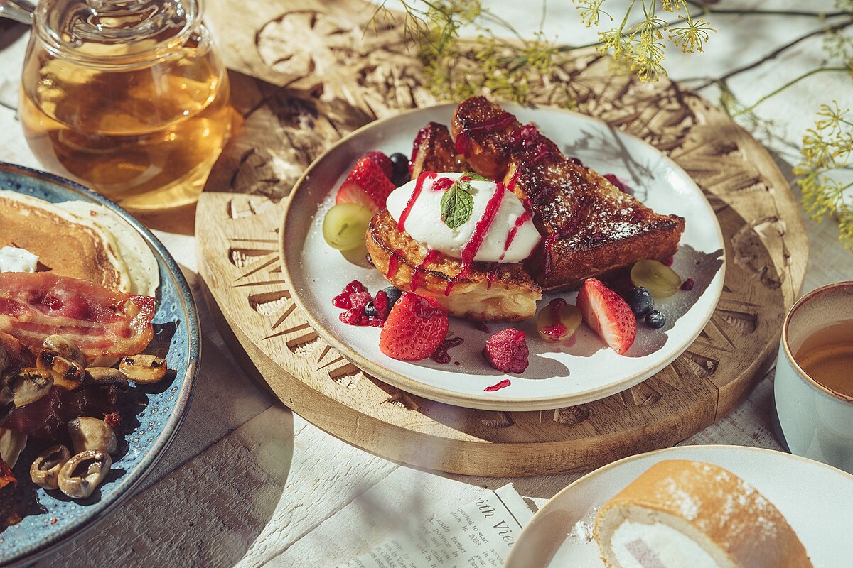不只有各國美食,P&T柏林茶館還推出春日限定小旅行套餐,從2/28至3/15,只要點選任一早午餐搭配春摘大吉嶺紅茶,額外再請你一份紅潤甜美的紅心芭樂鮮奶油戚風捲。