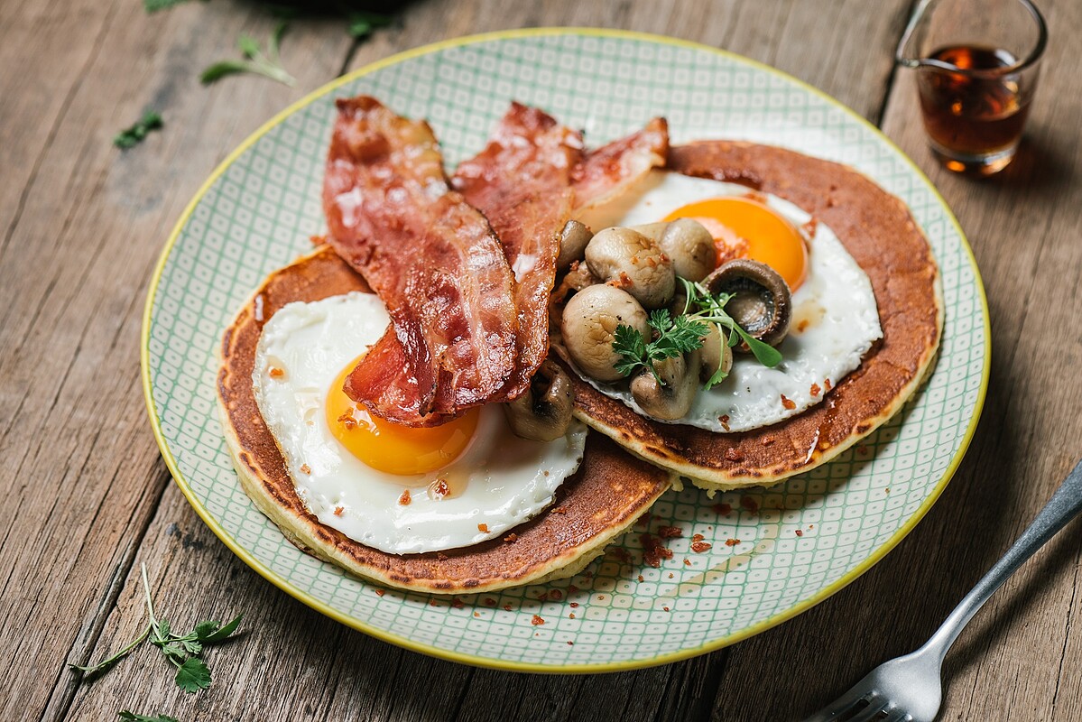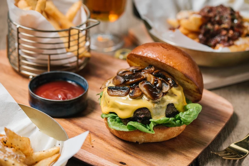 下一站來到亞洲,以微辣泰味紅咖哩醬汁淋上現炸雞塊,再搭配爽脆十足的大片青木瓜沙拉,化身為泰式紅咖哩炸雞堡。香煎和牛漢堡顧名思義使用吃過都無法忘懷的和牛,製作成厚實又多汁的肉排,再澆淋上熬煮到只剩酒香沒有酒氣的威士忌醬汁。最後一站到達紐約,以煎餅搭配培根煎蛋的經典美式早餐組合,絕對不會出錯。
