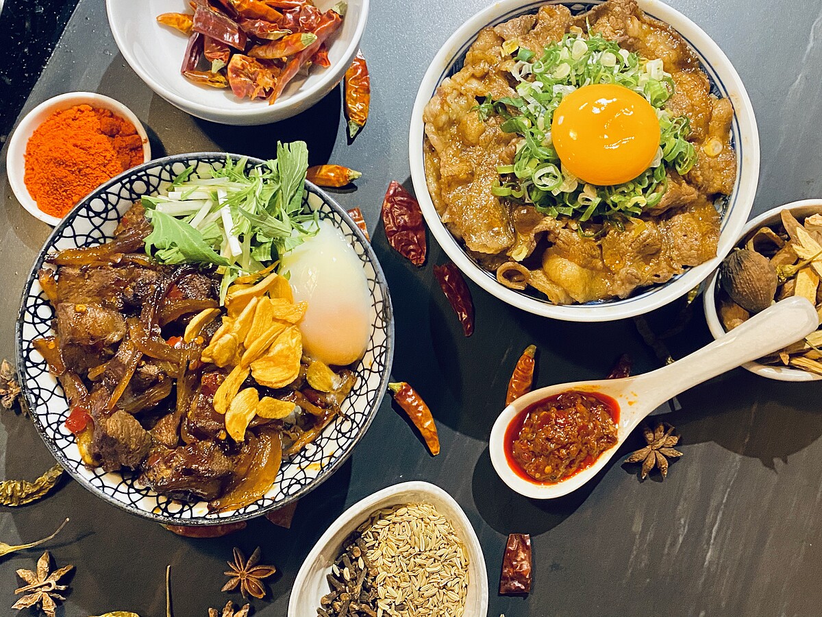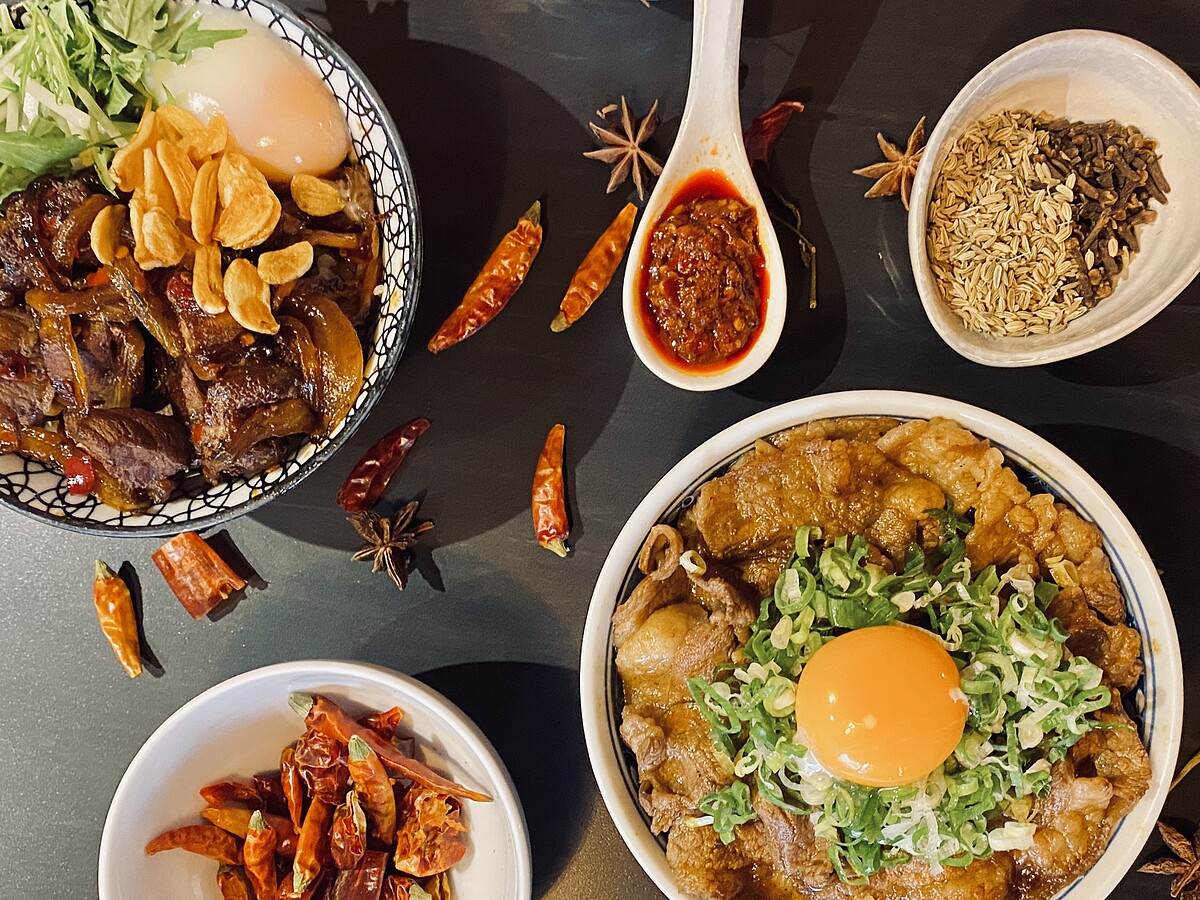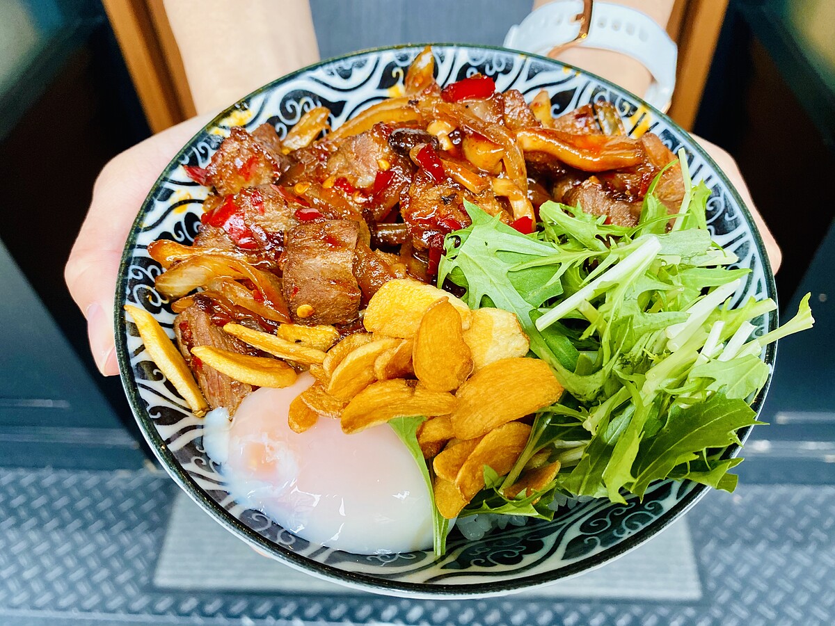 牛五花與豬五花肉以開丼獨門蔬果燒肉醬醃製外,更加入鼎旺傳家麻辣湯底,醃製入味的肉片吸飽了湯底的餘味,辣而不膩的溫潤口感,堆疊出燒肉丼風味的高度,推薦給初級不嗜辣的人嚐鮮。