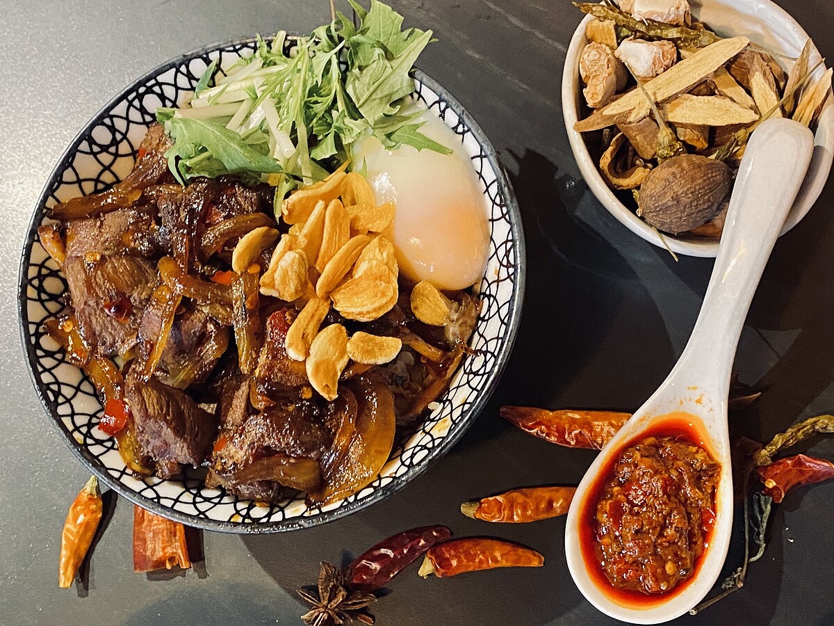 「麻辣辛燒肉丼」麻辣控必吃~開丼與鼎旺經典老字號麻辣火鍋聯名把麻辣鍋變成丼飯啦~鼎旺麻辣鍋是許多饕客們必吃之一,獨門招牌是可以喝的麻辣湯頭,以大紅袍花椒、青辣椒、丁香、山奈、八角 等數十種辛香料及中藥材耗費10小時熬煮而成!