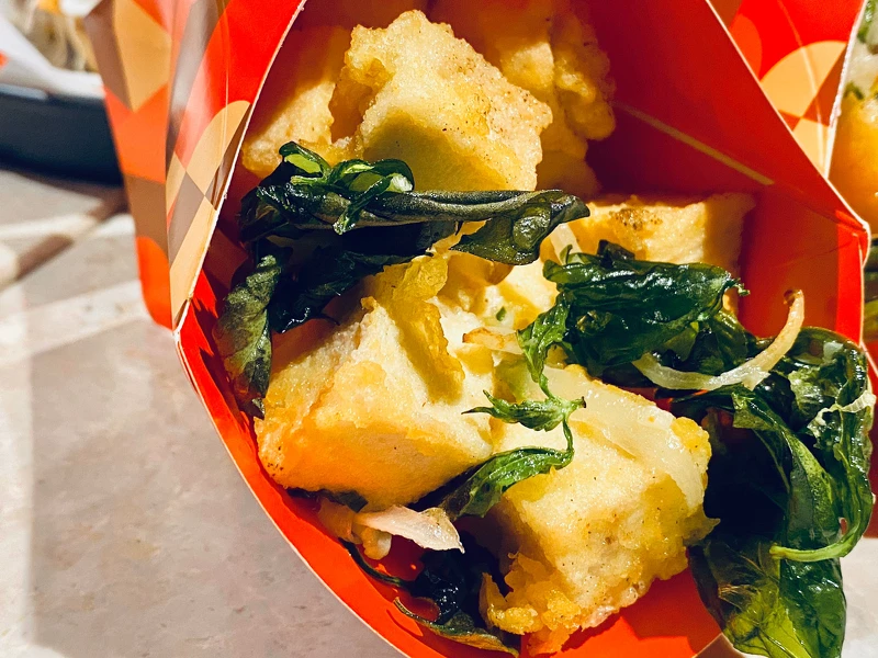 這次塔香系列炸物即特別選出四大正港台味食材佐料九層塔、洋蔥絲、蒜末、蔥花,下功夫研發出最適合炸物的鹹香風味,加入酥嫩炸百頁豆腐,每一口超涮嘴!