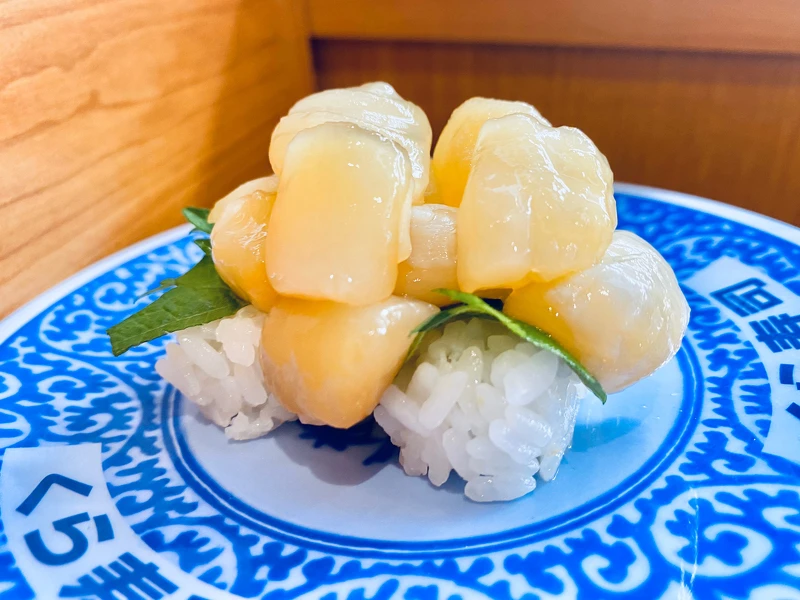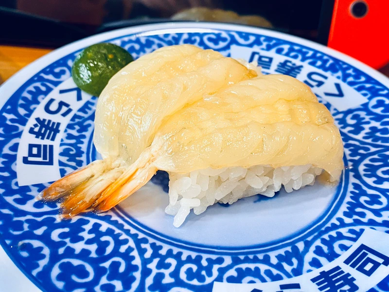 滿滿鮮甜風味的特大尺寸新鮮甜蝦,搭配紫蘇葉增添風味。