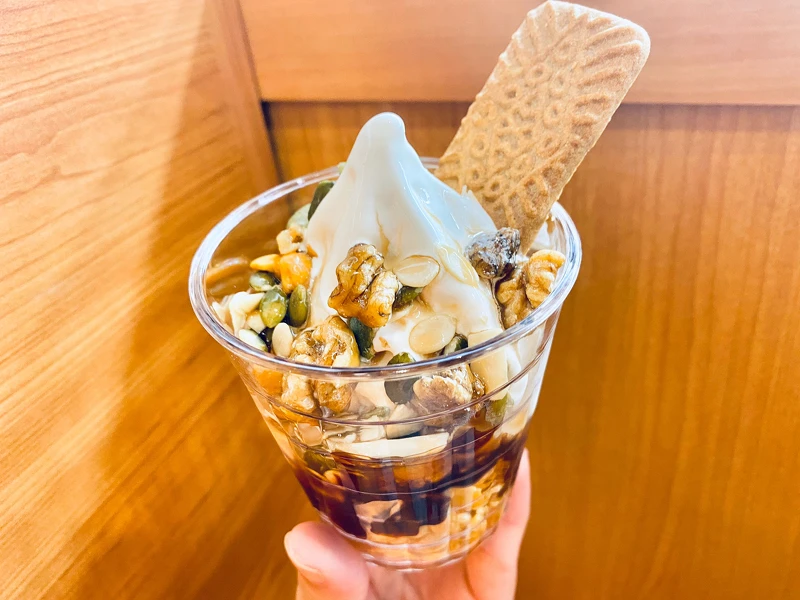 滑順濃郁北海道牛奶冰淇淋,香濃巧克力與焦糖醬的雙重搭配,再加上酥脆的堅果及焦糖脆餅,甜而不膩擄獲甜點控味蕾。