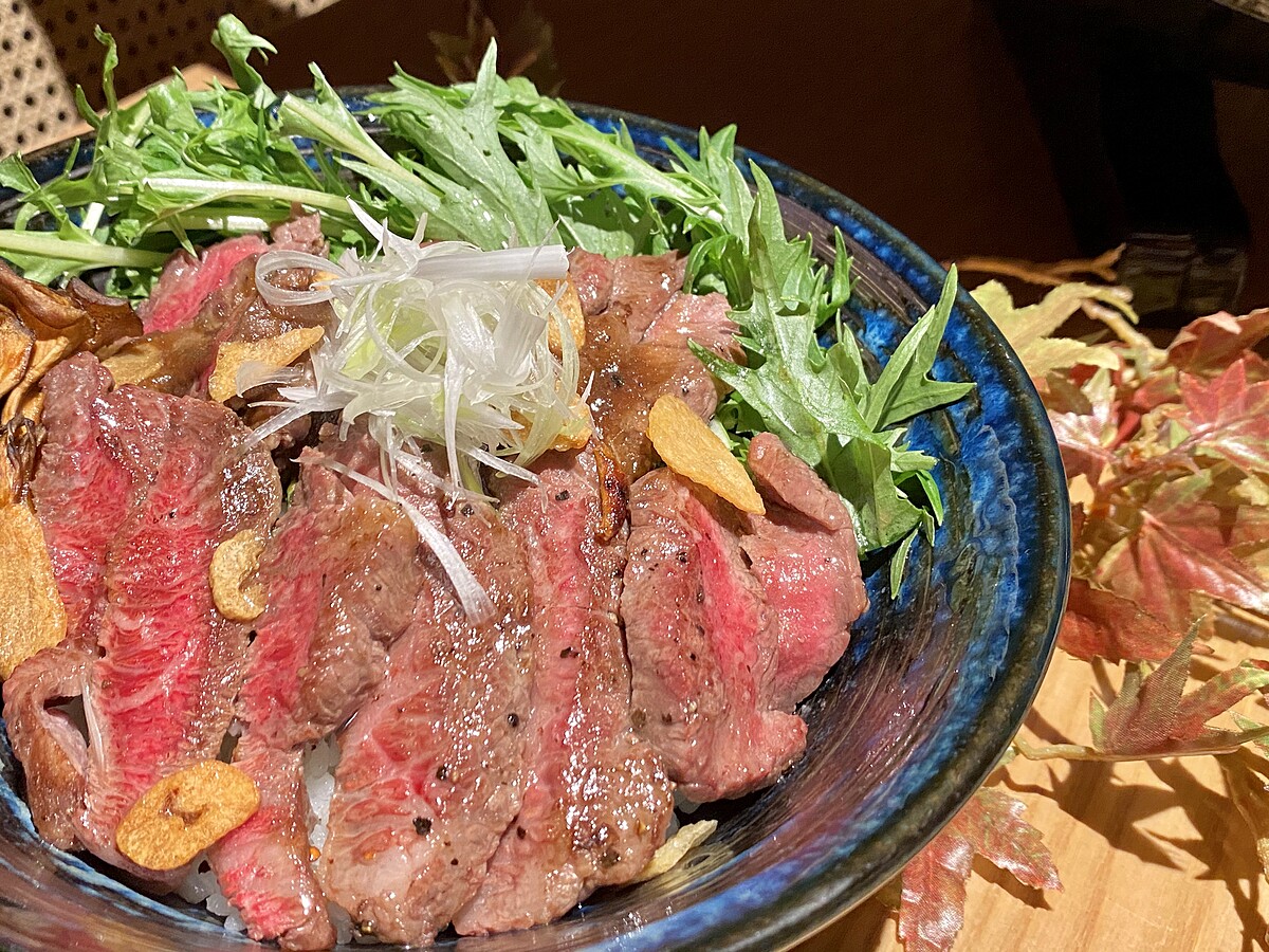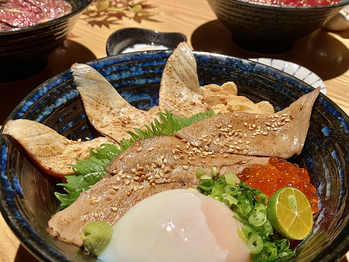 「炙燒日本黑鮪丼」以職人特選黑鮪中腹及時令鮮魚,輔以烈焰炙燒,使其散發獨特焦香,另外再附上半熟玉子、酥炸蒜片、及魚卵呈現多層次美味吃法!第一種-將入口即化的炙燒黑鮪沾以半熟玉子,用舌尖感受黑鮪融合蛋香的絕妙口感。第二種-以黑鮪搭配酥炸蒜片享用可增添辛香風味。第三種-滴上金桔享用果香甘甜的炙燒黑鮪美味更加分!