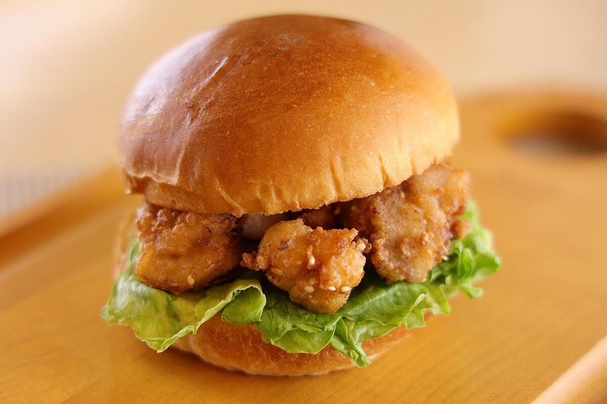 鮮嫩多汁炸雞塊搭配爽脆生菜夾入漢堡麵包中,搭配自家製的獨特中華風鹹甜醬汁,大口咬下超滿足,療癒口感與飽足感同時擁有!