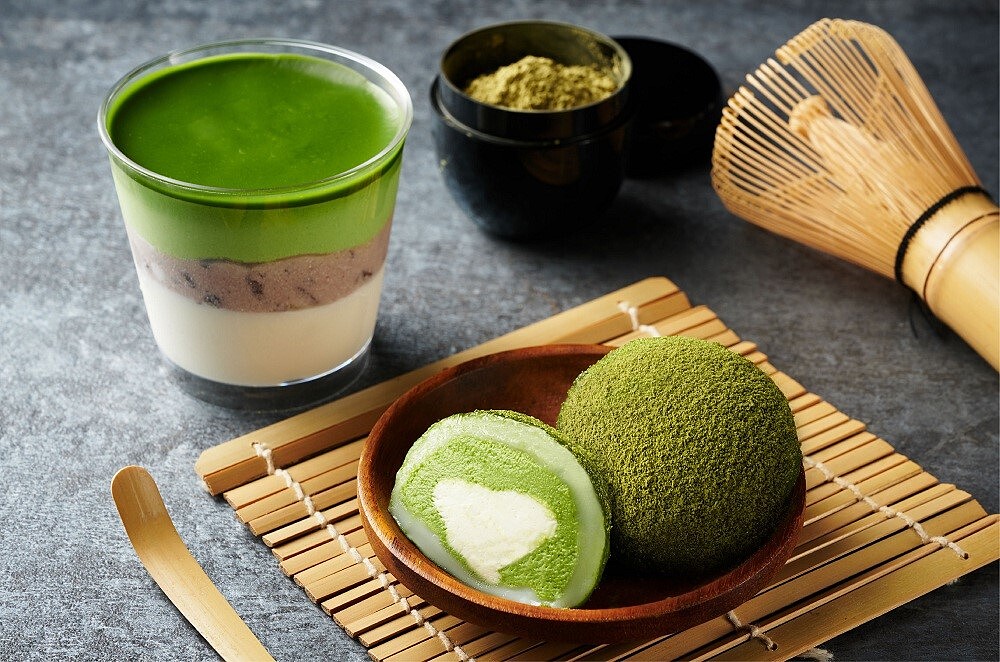 抹茶三重奏香緹杯 售價49元、抹茶芝心大福 售價59元