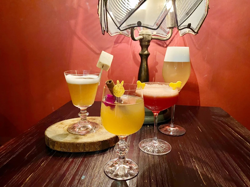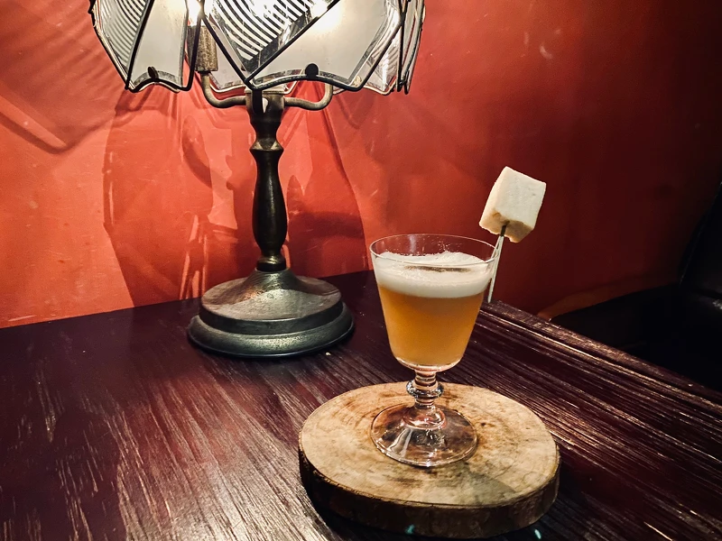 以威士忌為基底,再加入煮過的胡蘿蔔完全沒有菜味反而帶有香甜滋味,裝飾的兔子糖片是使用柳橙牛奶製作而成,建議可以先品嚐兔子糖片帶有微酸口感,在品嚐酒更增添風味!