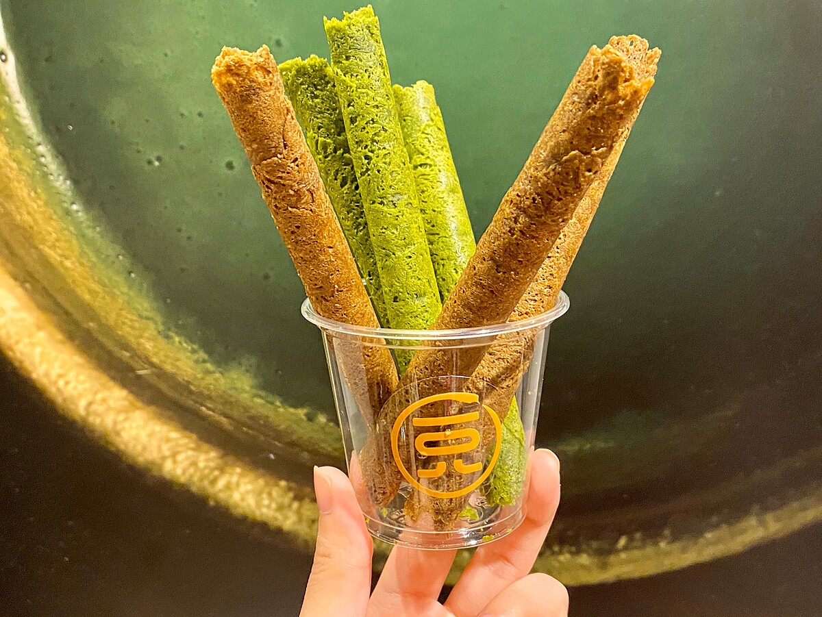 每日現場製作的抹茶及焙茶蛋捲,因費時費工,故每日能手工做出的數量有限,除了吸引消費者圍觀外,出爐時飄香的美味,更讓人垂涎三尺。一口吃下口感紮實,特別將抹茶/焙茶蛋捲命名為MATCHA/HOJICHA “CIGARE,感受濃厚茶香與回甘茶韻。