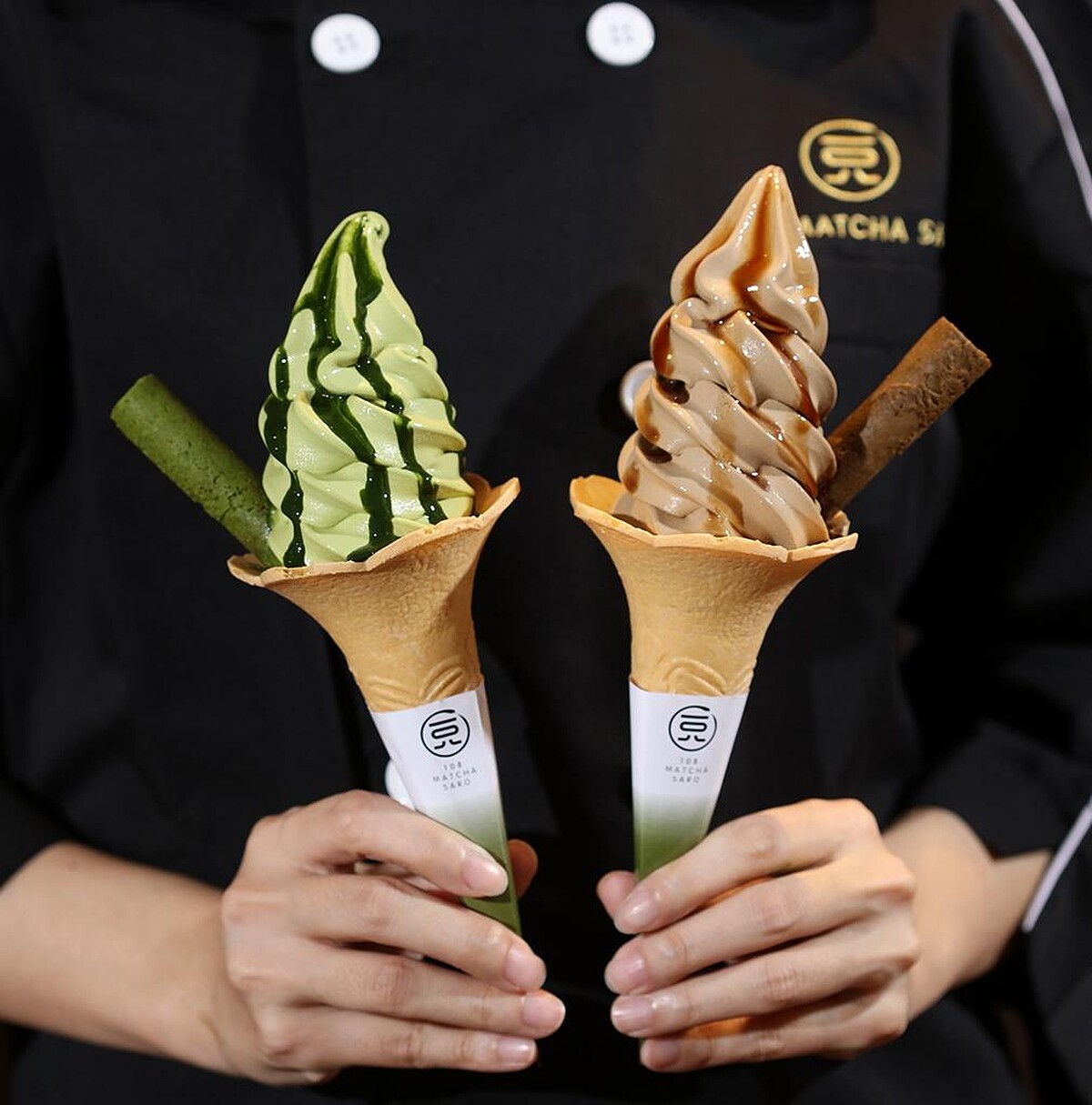 想要嚐鮮抹茶/焙茶蛋捲新品的抹茶控,不妨選擇抹茶/焙茶蛋捲霜淇淋,口感硬、脆、香的蛋捲搭配招牌霜淇淋,一口蛋捲、一口霜淇淋,每一口都充滿濃茶香超幸福!
