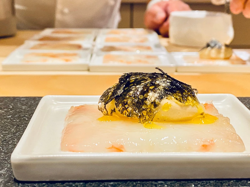 在食材挑選方面,除了最新鮮的日本食材,主廚Chef Hiroki別出心裁的眼光,每年都會到不同國家找尋最頂級食材,足跡遍佈全球。例如遠至法國獲取新鮮食材,親自監督製作新鮮魚子醬!